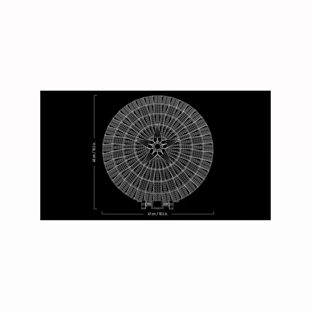 The 3,128-piece model has a diameter of 47 cm and stands on a display stand with a nameplate. Additional building fun is provided by the LEGO Builder app, which includes a digital version of the building instructions for this set.